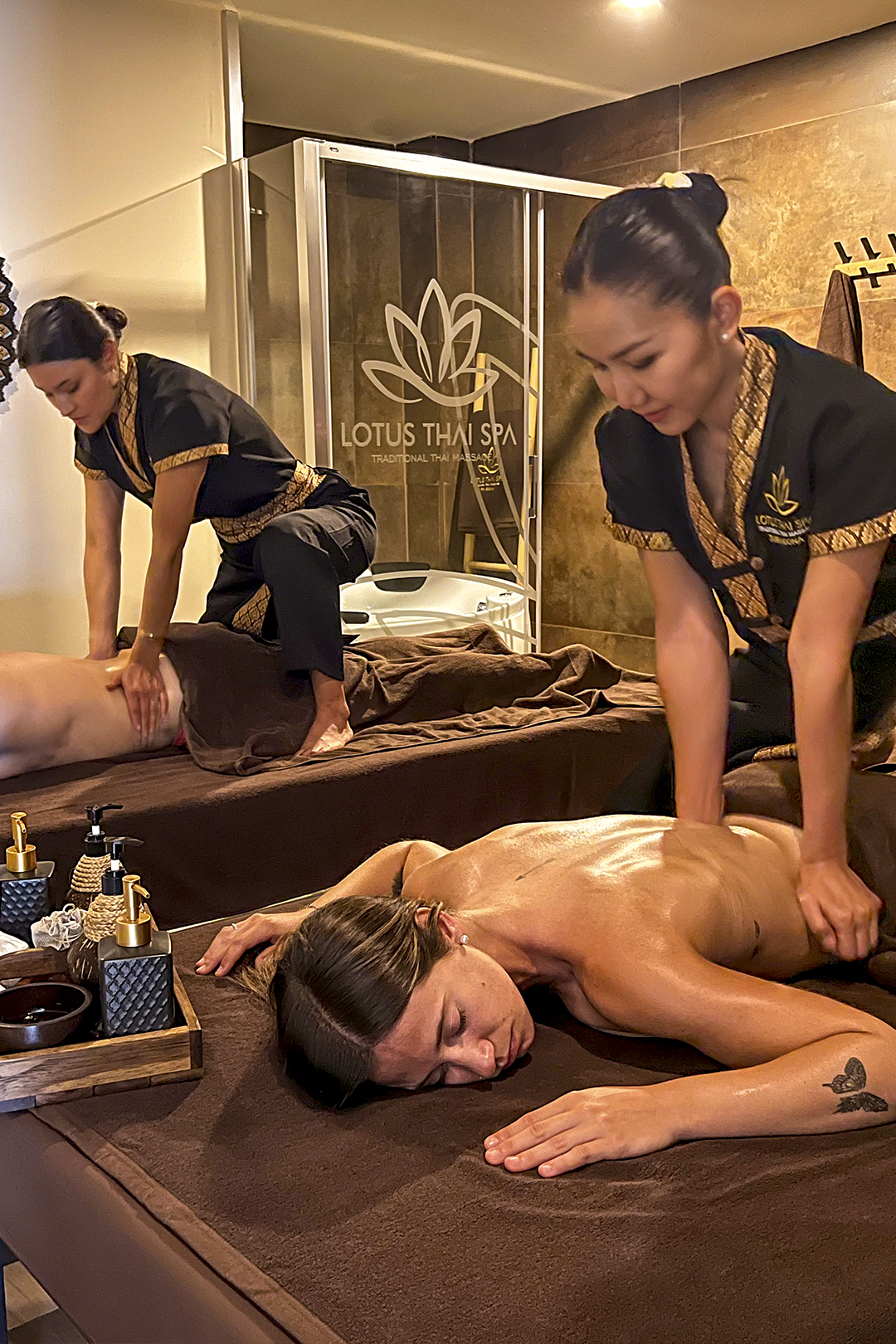 El massatge en parella és una experiència dissenyada per a compartir un moment de relaxació i connexió amb un ser estimat. En una sala privada i harmoniosa, tots dos rebran simultàniament un massatge tradicional tailandès o amb oli, segons la seva preferència. Aquesta experiència conjunta enforteix els llaços emocionals i permet a tots dos gaudir dels beneficis del massatge, com l'alliberament de tensions, la millora de la circulació i la promoció d'un estat de benestar general. És una opció ideal per a celebrar ocasions especials o simplement per a gaudir d'un moment de cura mútua.